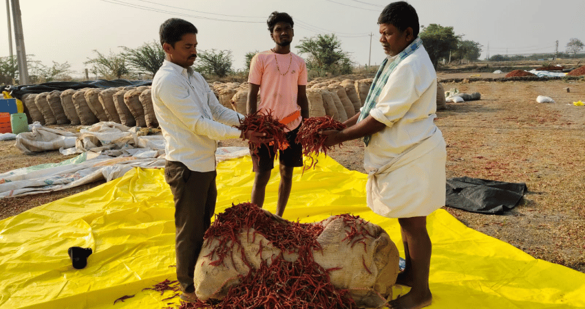 N. Nagesh, a seasoned red chilli farmer from Sriramarangapura village in Ballari, Karnataka, cultivates the HPH 5531 variety across eight acres. With over 25 years of experience, he traditionally followed conventional practices, spraying crop protection inputs every 2-3 days. Reliance on local input dealers often led to unnecessary products, escalating costs. Without adherence to waiting periods or Pre-Harvest Intervals (PHI), his produce frequently failed to meet Maximum Residue Limit (MRL) standards, restricting access to export markets and limiting income potential.
