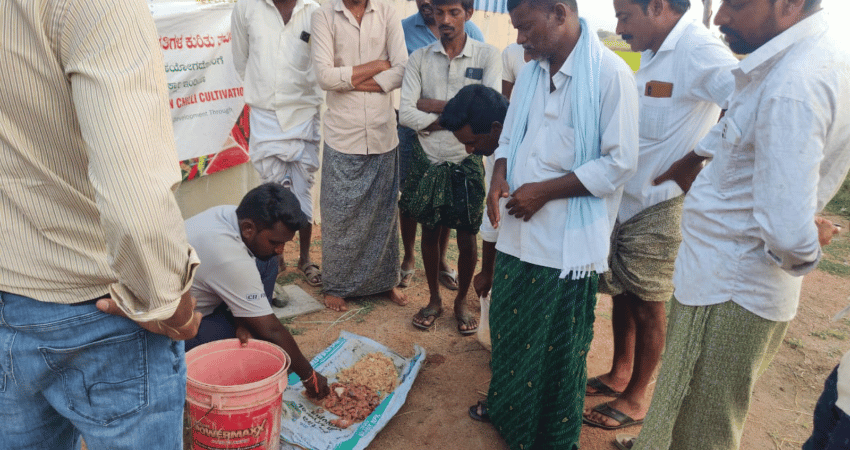 M. Mallikarjuna, a small-scale farmer from Madire village in Kurgodu Taluk, Ballari, cultivates red chilli (HPH 5531) on 4.5 acres. Like many farmers in the region, he initially relied heavily on chemical fertilizers, plant growth regulators (PGRs), and synthetic fungicides. Frequent spraying significantly increased his cultivation costs while providing limited returns, rendering his farm economics unsustainable.