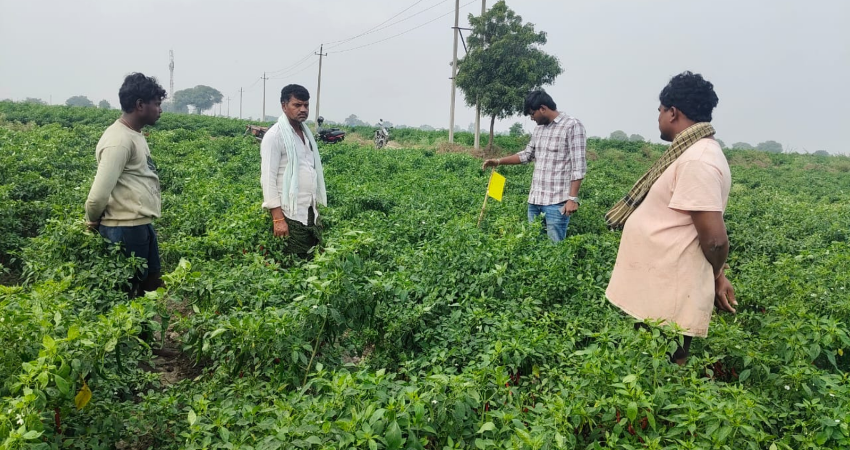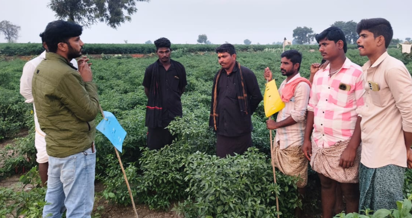 M. Hanumanthappa Reddy, a progressive farmer from Kalkamba village in Ballari, cultivates red chilli (HPH 5531) on 4.5 acres. Like many farmers in the region, he also faced severe challenges in managing sucking pests such as thrips and mites. These pests caused leaf curling, inhibited photosynthesis, stunted crop growth, and led to lower yields. Consequently, nearly 40% of his cultivation costs were spent on chemical pesticides; however, effective control remained inconsistent, leading to rising expenses and environmental concerns.